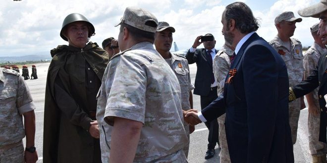 Cumhurbaşkanı el Esad’ı temsil eden Bakan Azzam Hmeymim Havalimanında nazizme karşı zaferin 75. yıldönümü kutamalarına katılıyor