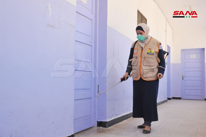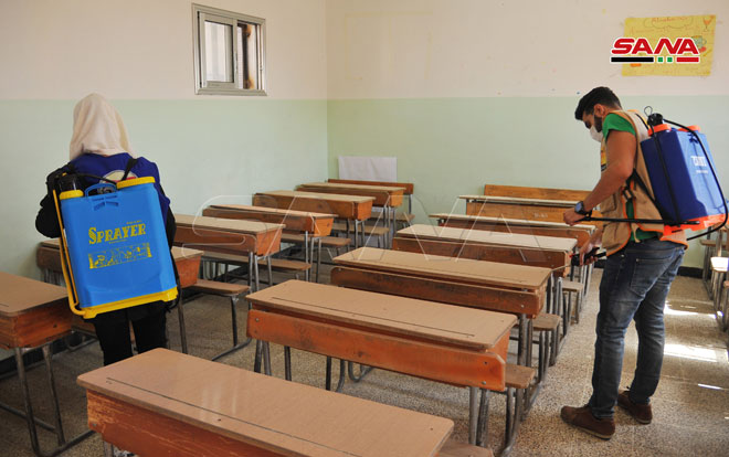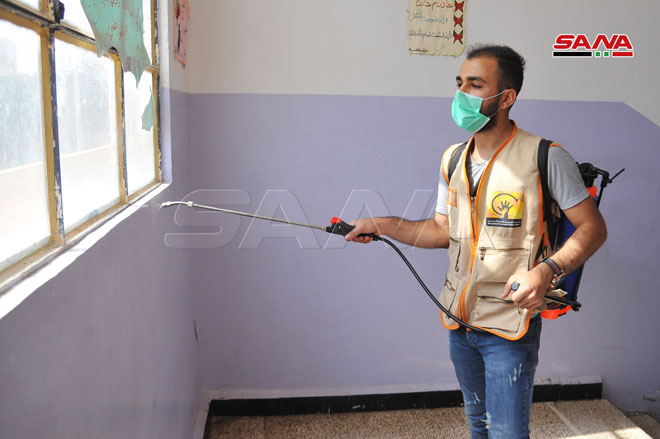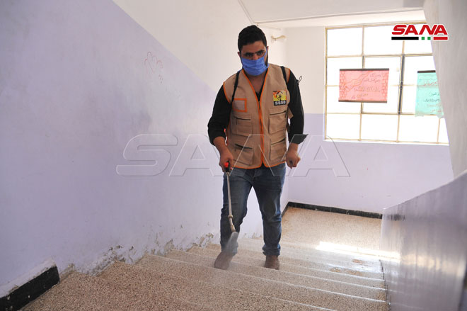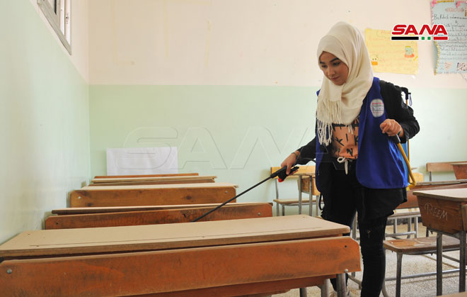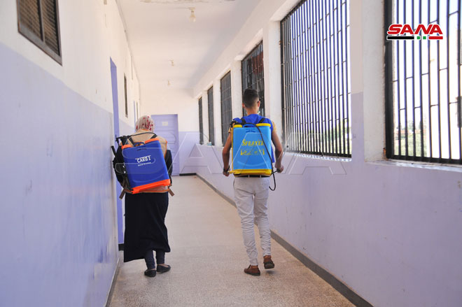 Şam Kırsalındaki Muaddamiye Okullarında Sterilizasyon ve Temizlik Kampanyası’ndan Alınan Görüntüler