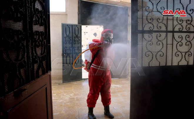 Koronaya karşı koyma kapsamında Deyrezzor Üniversite ve Fakültelerinde Dezenfekte Kampanyasından Alınan Görüntüler