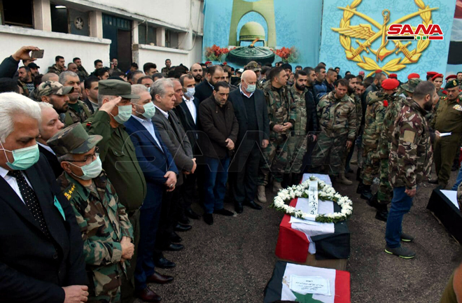 Cenaze töreni, şehitlerin kanıyla vatanın korunduğuna inanan şehit ailelerinin fedakarlıklarını ve şehitlerin kanıyla Suriyelilerin terörü yenme iradesi ve kararlılığının takdir edilmesi için Homs ili halkından geniş bir kalabalığın şehit cenazesine katıldığı resmi ve kitleler huzurunda gerçekleşti.