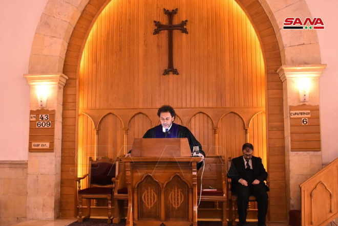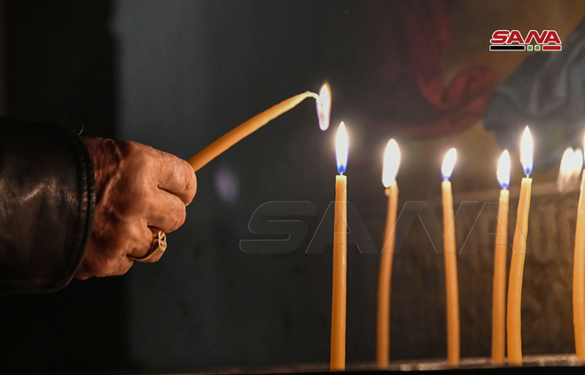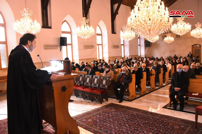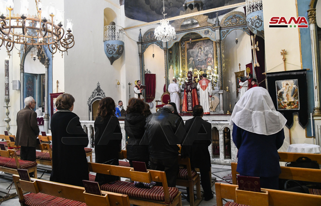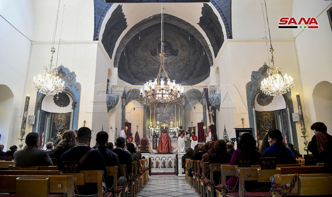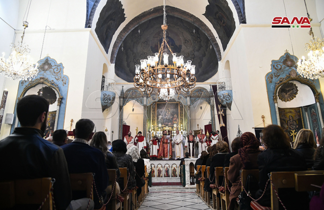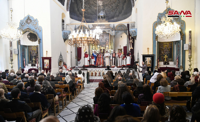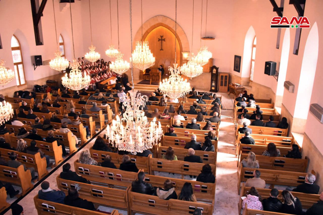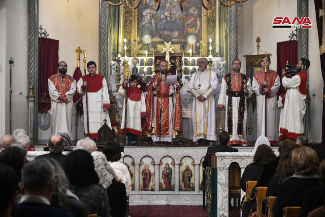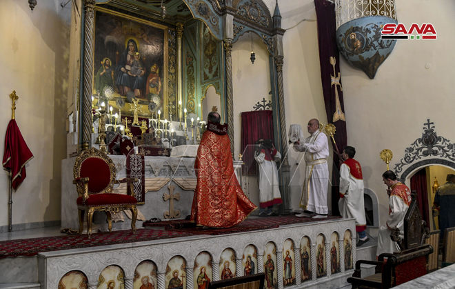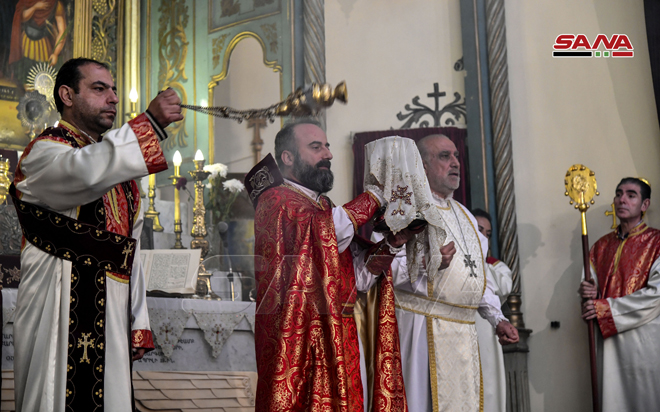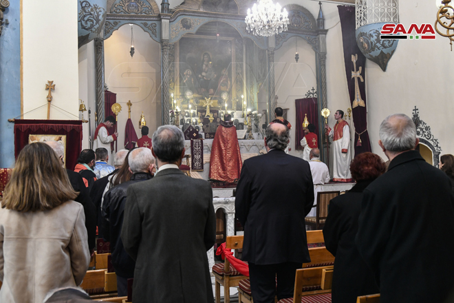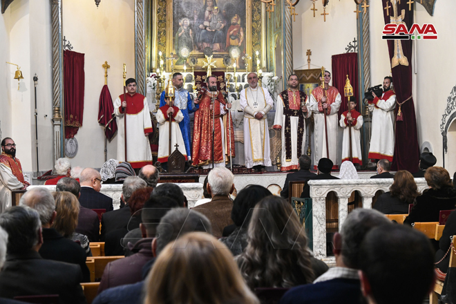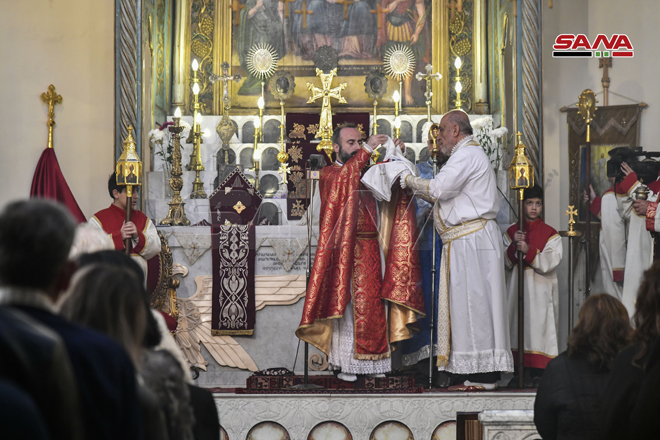 ŞAM – Noel Bayramını Sevgi ve Barış Elçisi Hz. İsa’nın doğum günü münasebetiyle bu sabah Şam şehrinde Aziz Sarkis Ermeni Ortodoks Kilisesi’nde İlahi Ayin düzenlendi.