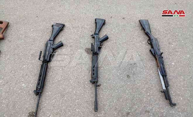 DERA – Yetkili makamlar, bugün Dera kırsalının batısında terör grupların kalıntılarından hafif ve orta silahlar ve çeşitli mühimmat ele geçirdi.