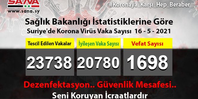 Bakanlık yayınladığı ve SANA’nın nüshasını aldığı beyanda, Suriye’de tescil edilen vaka sayısının bugüne kadar 23738’e yükseldiğini, bunlardan 20780’inin iyileştiğini, 1697’sinin de vefat ettiğine işaret etti.