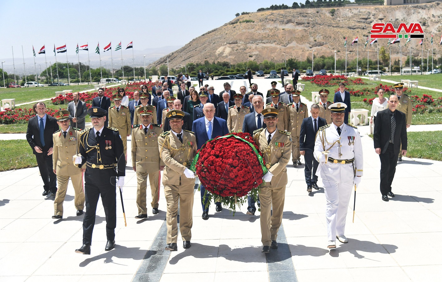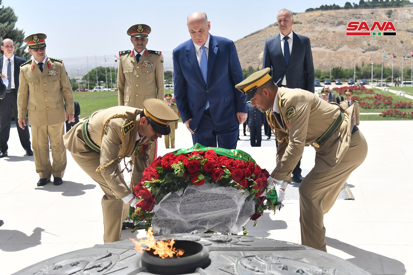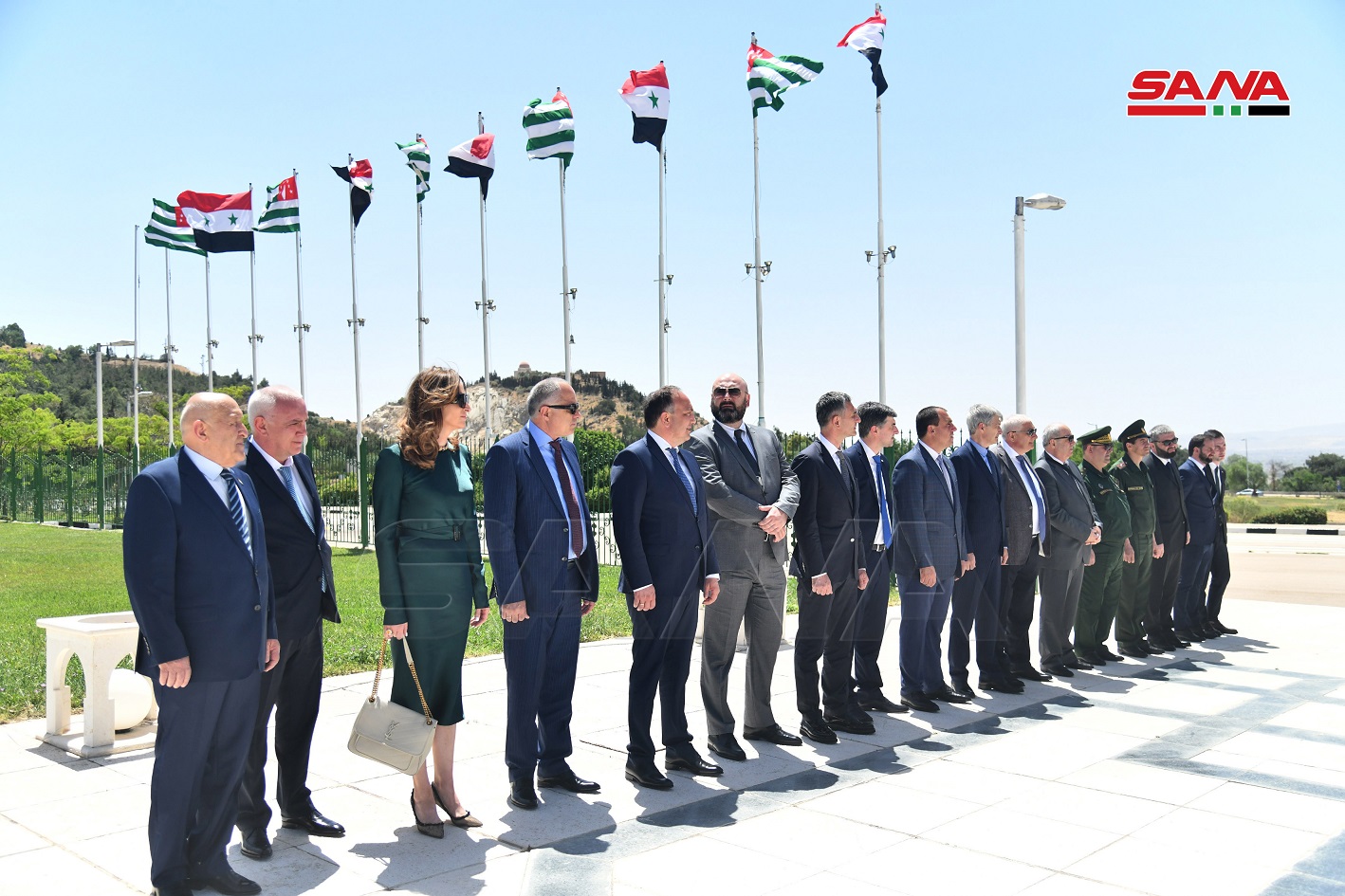 Abhazya Cumhurbaşkanı Aslan Bjanya Şam’daki Şehit Anıtı’na bulunduğu ziyaretinden görüntüler