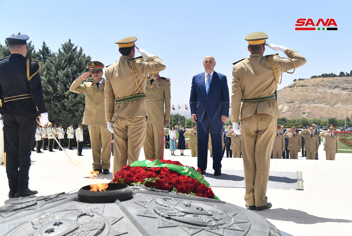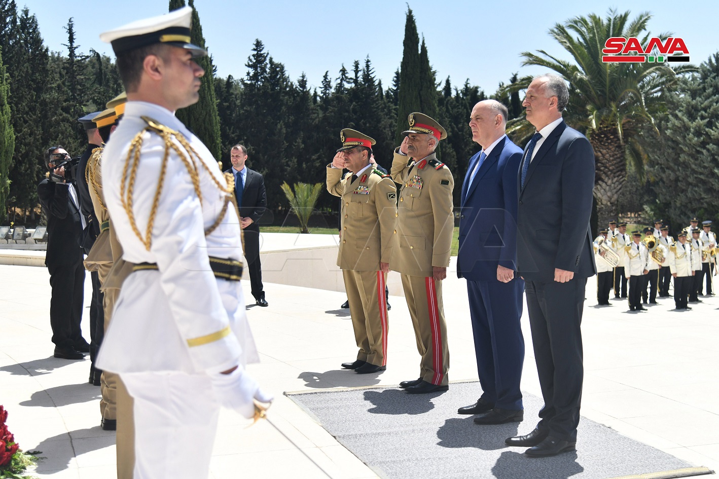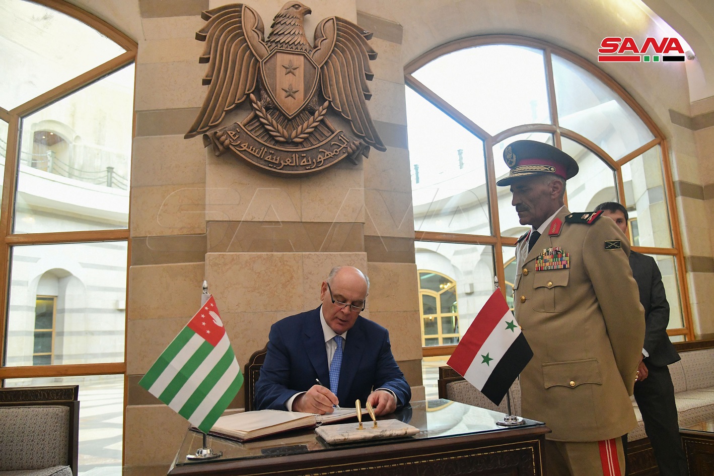 Abhazya Cumhurbaşkanı Aslan Bjanya Şam’daki Şehit Anıtı’na bulunduğu ziyaretinden görüntüler