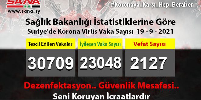 Bakanlık yayınladığı ve SANA’nın bir nüshasını aldığı beyanda, Suriye’de tescil edilen Koronavirüs vakaları bilançosunun bugüne kadar 30709’a yükseldiğini, tescil edilen korona vakalarından 23048’inin şifa bulduğunu, 2127 vakanın da vefat ettiğine işaret etti.