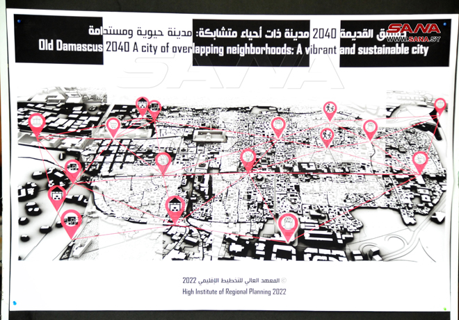 Konferansın açılışında, Bölgesel Planlama Yüksek Enstitüsü tarafından bir yıl önce düzenlenen “Şam 2040.. İç İçe Mahalleler Şehri.. Hayati Bir Sürdürülebilir Şehir” başlıklı çalıştayın çıktılarının lansmanı yapıldı.
