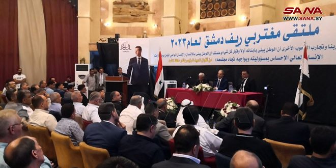 ŞAM KIRSALI 13 Ağustos (SANA) – 2023 yılı Şam Kırsalı Gurbetçiler Forumu’nun faaliyetleri bugün Dışişleri ve Gurbetçiler Bakanı Faysal Mikdad’ın katılımıyla Nabik şehrinde başladı.