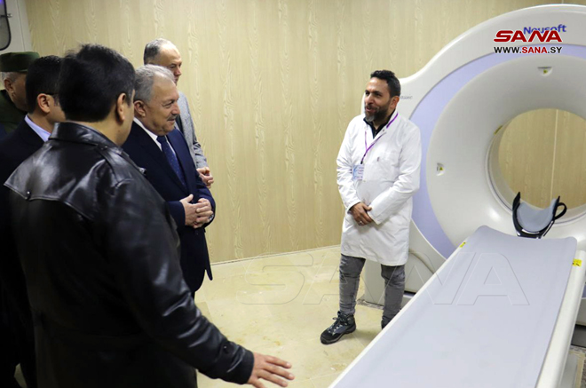 HALEP 08 ŞUBAT 2024 (SANA) – Başbakan Hüseyin Arnus, Halep’in Bustan El Başa mahallesindeki Şehit Zahi Azrak Hastanesi’ni, terör nedeniyle zarar gören hastaneyi onararak hizmete açtı.