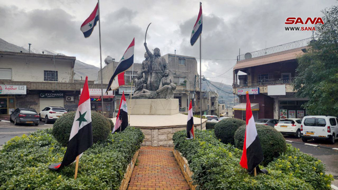 İŞGAL EDİLEN SURİYELİ GOLAN 14 ŞUBAT 2024 (SANA) – Kapsamlı grevin 42. yıl dönümü anısına ve işgalci İsrail’in Golan’ı ilhak etme yönündeki sahte kararını reddetmek amacıyla… bugün işgal edilen Suriye Golan’ında ve köy meydanlarında ulusal bayrak göndere çekildi.