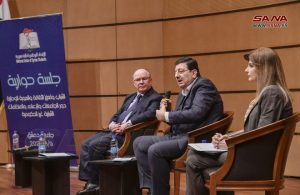 ŞAM (SANA) – Farkındalık, aidiyet ve kimliğin geliştirilmesinde medya kurumlarının rolü, gençliğin rolü ve kimliğimize ve medeniyetimize bağlı kalmanın önemi, bugün Enformasyon Bakanı Butrus Hallak ve Yüksek Öğretim ve Bilimsel Araştırma Bakanı Bessam İbrahim’in huzurunda Şam Üniversitesi’nde gerçekleşen diyalog toplantısının