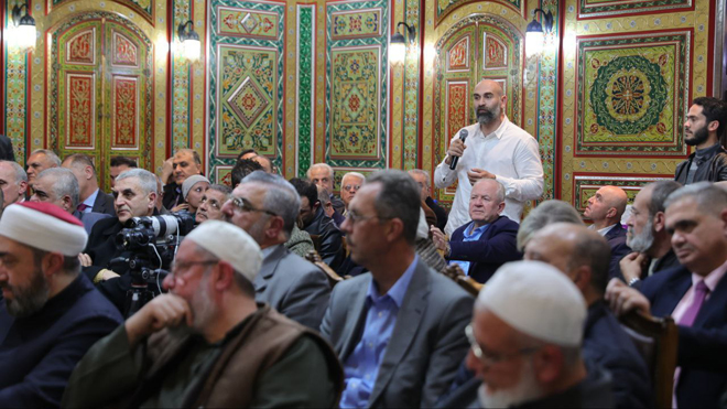 TARTUS (SANA) – Suriye Arap Cumhuriyeti Cumhurbaşkanı Sayın Ahmed El Şara, şehri ziyareti sırasında Tartus Valiliği ileri gelenleriyle bir araya geldi.