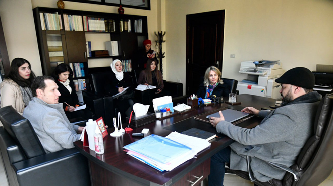 Merkezin Şam’daki binasında gerçekleşen görüşmede El Kasım, merkeze danışmanlık desteği sağlayacak uzmanların varlığına ağırlık verilmesinin ve merkez çalışanlarının becerilerinin geliştirilmesi için atölye çalışmaları ve eğitim kursları düzenlenmesinin önemine dikkat çekti.
