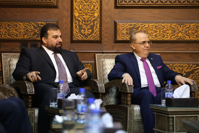 ŞAM (SANA) – İçişleri Bakanı Enes Hattab, Yüksek Öğretim Bakanı Mervan Halabi’nin huzurunda, Süveyde Valisi Mustafa Bekkur başkanlığındaki Süveyde Valiliği’nden ileri gelen ve tanınmış kişilerden oluşan bir heyeti kabul etti.