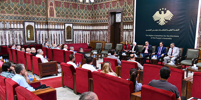 ŞAM (SANA) – Halk Meclisi Seçimleri Yüksek Komitesi, seçim sistemini görüşmek, görüş ve önerilerini dinlemek üzere Şam’daki Halk Meclisi binasında doktor ve tıp sendikalarını temsil eden bir heyetle bir araya geldi.
