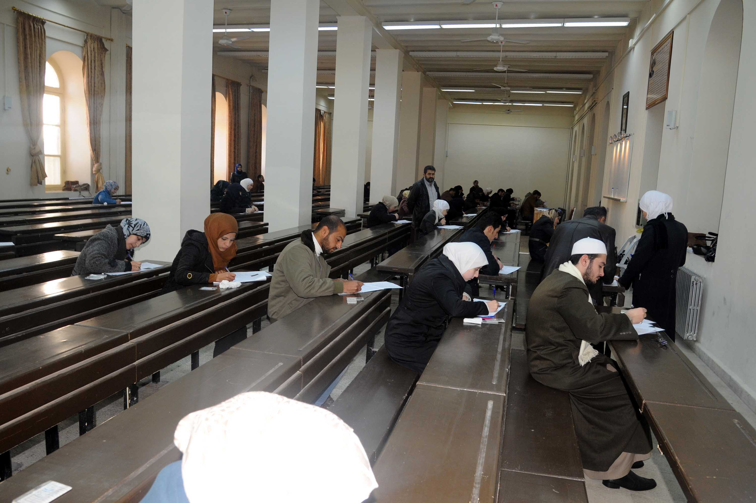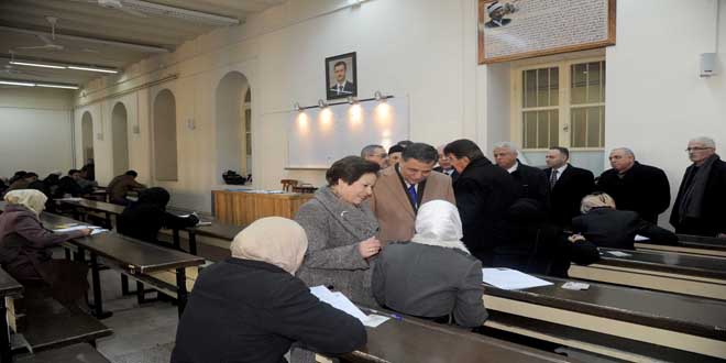 Baas Partisi Ulusal Yönetim Kurulu üyesi ve Yüksek Öğretim Ofisi Başkanı Feyruz el Musa Yüksek Öğretim Bakanı Muhammed Amir Mardini ve Şam Üniversitesi Rektörü Muhammed Hassan el Kürdinin eşliğinde Şam Üniversitesinde sınav seyrini denetledi.
