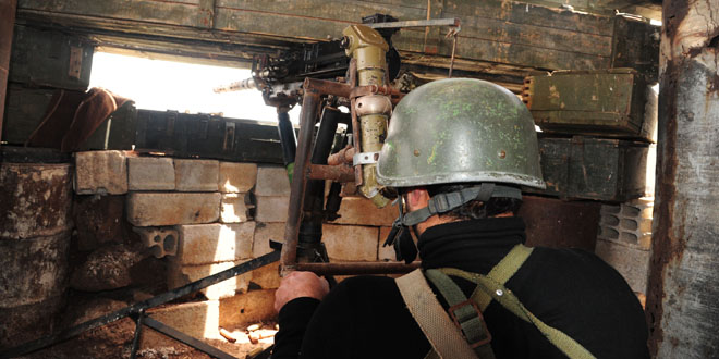 Saha kaynakları SANA’ya açıklamalarında; ordu birliklerimizin Hama İline tabi Selemiye kırsalı Kantra Bölgesinde Nusra Cephesinden bir terör grubunu sıkı bir pusuya düşürdüklerini ve grubun tüm üyelerini ölü ve yaralı düşürdüklerini ifade ederken; havzalarında bulunan silah ve mühimmatlarını imha ettiklerini aktardı.