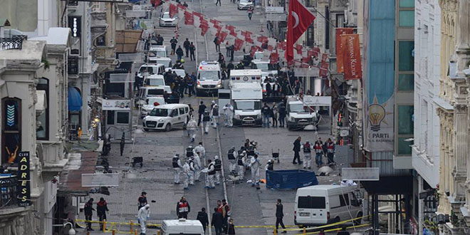 İSTANBUL – İhvancı Erdoğan rejiminin çokuluslu tekfirci ve kiralık terör çetelere her türlü desteği temin ettiği Türkiye’nin İstanbul Kenti İstiklal Caddesi’nde meydana gelen patlamada 5 kişi öldü, 36 kişi de yaralandı.
