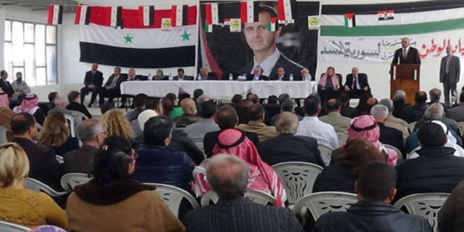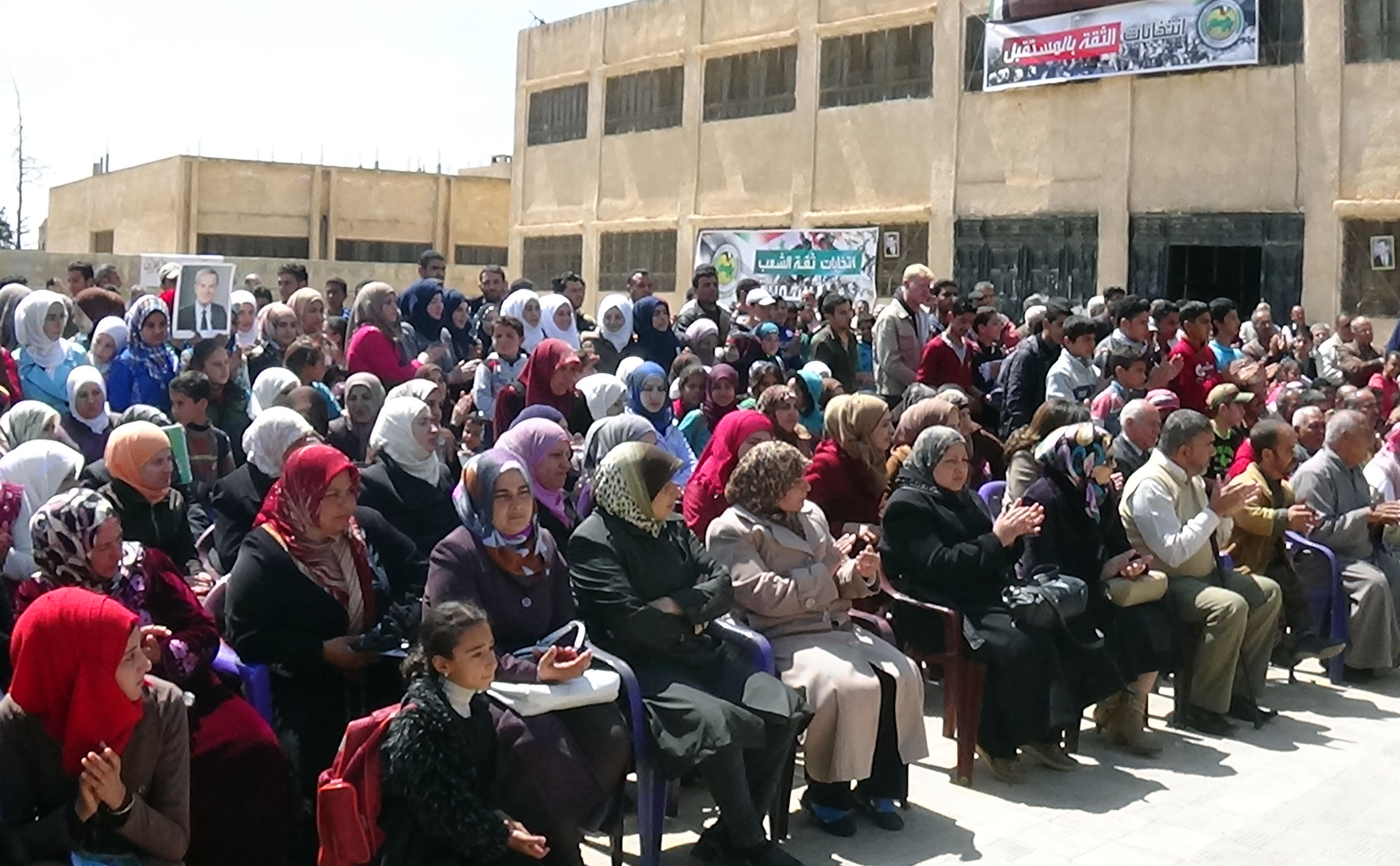 Mitinge katılan Dera Valisi Muhammed Halit el Hanus; seçimlere yoğun katılımın terörle mücadele, ulusal uzlaşma ve siyasi sürecin ilerletilmesine eş zamanlı bir başarı olacağını ifade etti.