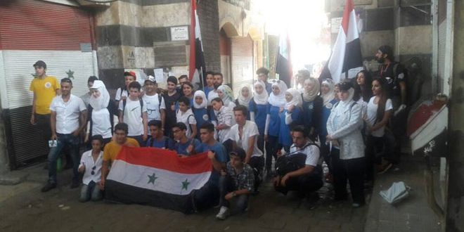 60’tan fazla genç kız ve erkeğin katıldığı yürüyüşte Nasır Caddesinden Şam’ın yedi kapısı bölgesine yürüyerek, tarihi özelliğe sahip bu arkeolojik kapılar üzerinde Suriye’nin şanlı bayrağı dalgalandırıldı. Ardından Başkan Köprüsü üzerinden Rebva Bölgesine yürüyen katılımcılar, piknik yeri kafeteryalarla dolu bu bölgede eğlence faaliyetleri düzenledi.
