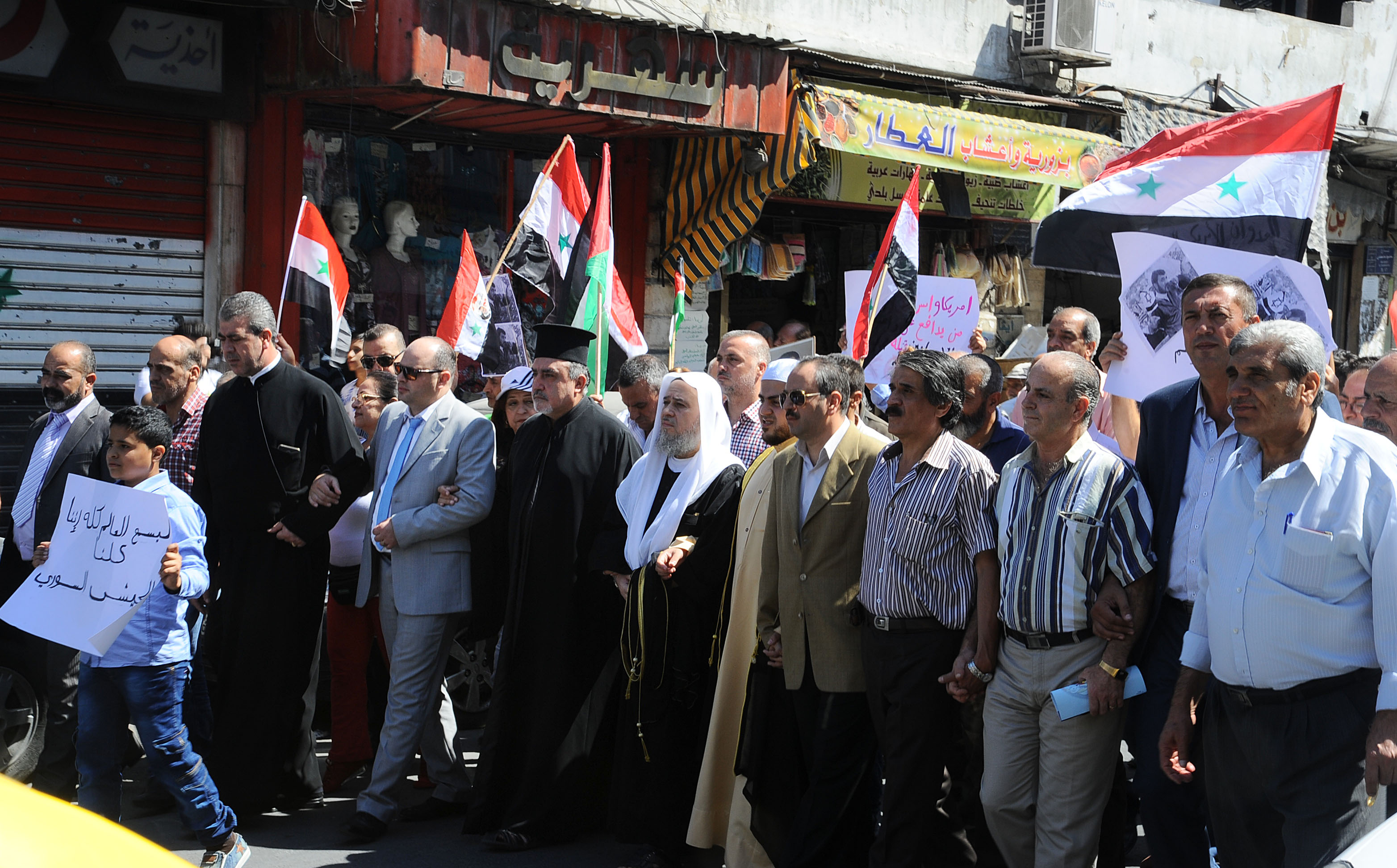 ŞAM – Şam’ın Düveylia Semtindeki Aziz Yusuf Kilisesi önünde toplanan halk kitleleri bugün Amerikan’ın Deyrezzor kırsalında Suriye ordusunun mevkiine saldırısını keskin ifadelerle kınadı.