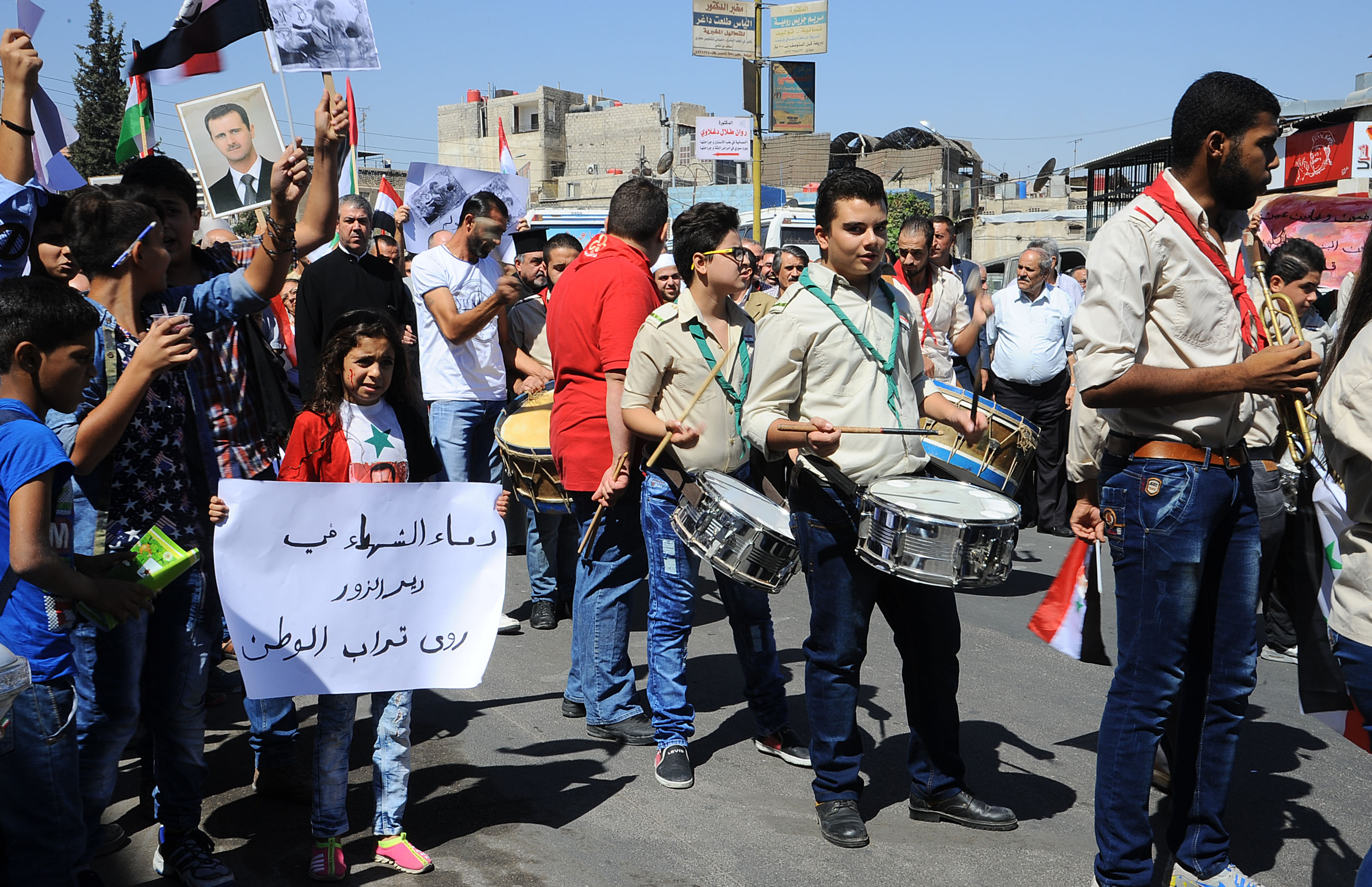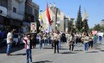 Suriye ordusu ile dayanışma ve saldırıyı kınama pankartlarının açıldığı eylemde kilise bando ekibi ulusal marşlar seslendirdi.